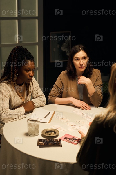 Молодые и черные женщины слушают во время чтения карт Таро