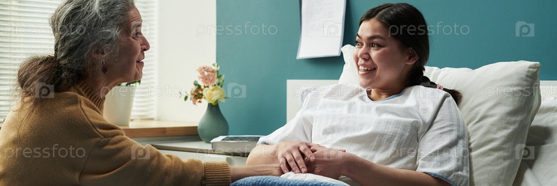 Старшая мать посещает счастливую беременную дочь в роддоме
