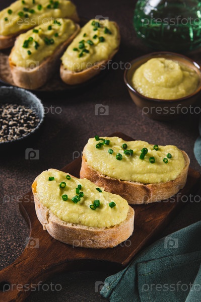 Зеленые кабачки разбросаны на бутерброд с хлебом на борту на столе с вертикальным видом