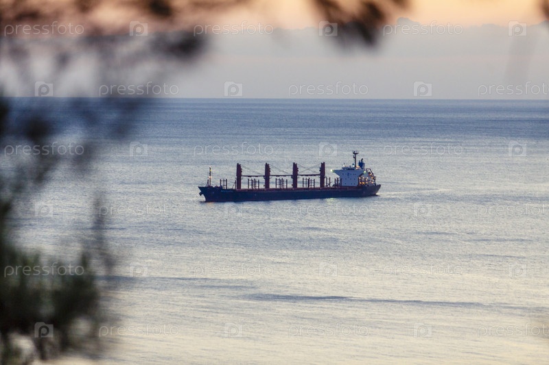 В порту Новороссийска при закате солнца корабли находятся в рейде