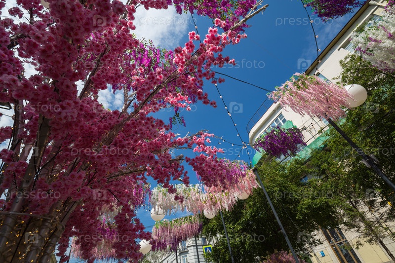 Искусственные деревья и цветы Весна на центральной пешеходной улице