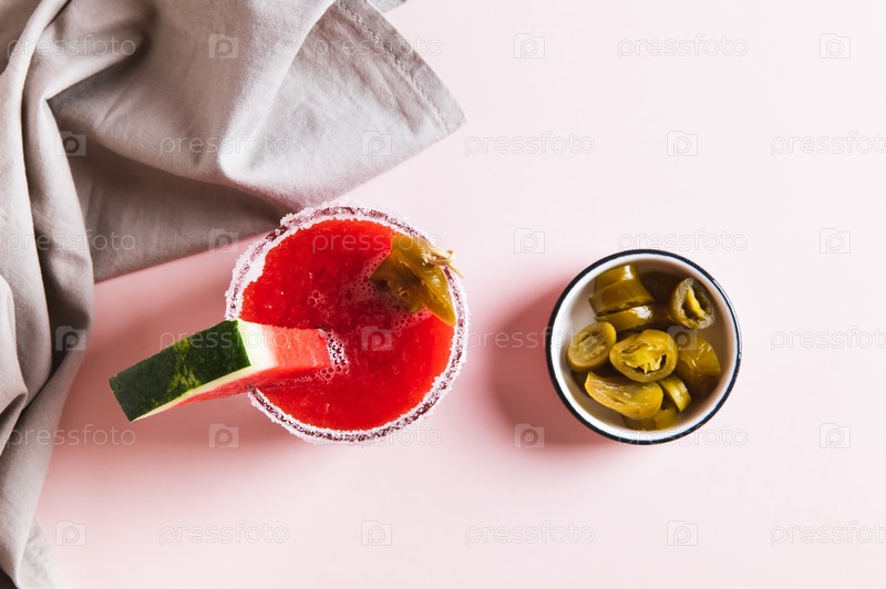 Закройте горячий коктейль с арбузом джалапено в стакане на верхний вид