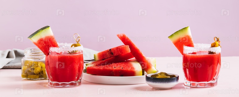 Горячий коктейль с арбузом джалапено в стаканах на столе веб-баннер