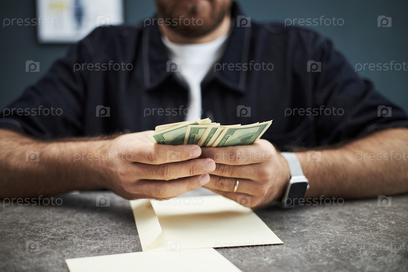 Подсчет наличных денег на столе Банковского офиса Человек во время транзакции