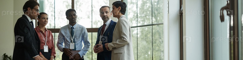 Разнообразная группа профессионалов обсуждает бизнес-стратегию в помещении