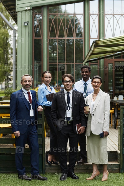 Разнообразная группа бизнес-профессионалов, работающих в сети на открытом воздухе