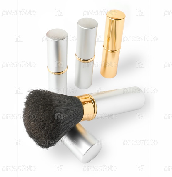 Набор косметики - кисть и тюбики помады
