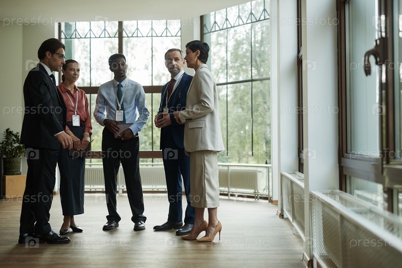 Мультиэтнические бизнес-профессионалы среднего возраста, занимающиеся серьезной дискуссией