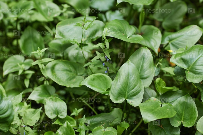 Выращивание пышных зеленых листьев на открытом воздухе в естественной лесной среде