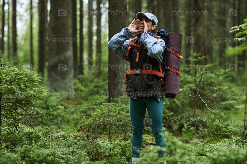 Девушка-подросток кричит, когда ходит в одиночку по лесу
