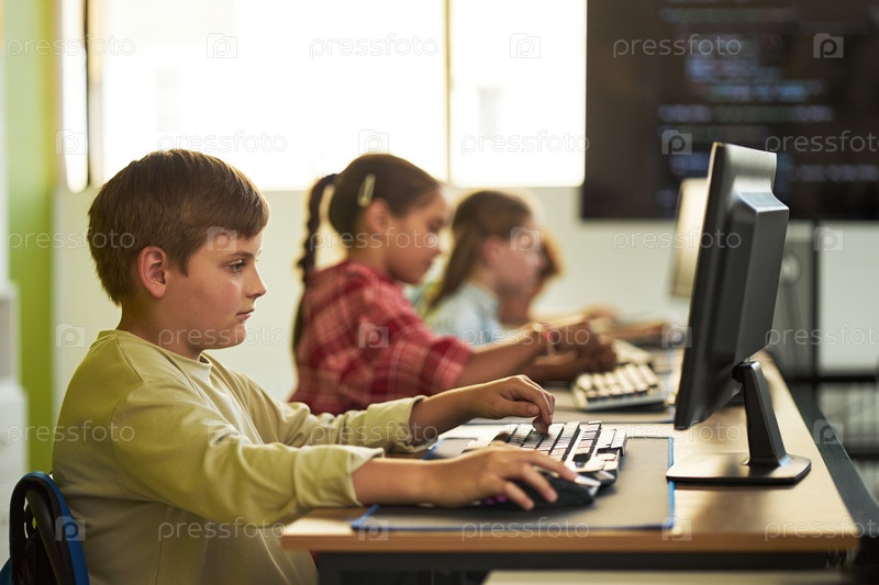 Использование компьютера в классе с разнообразными детьми, учащимися программированию мальчик