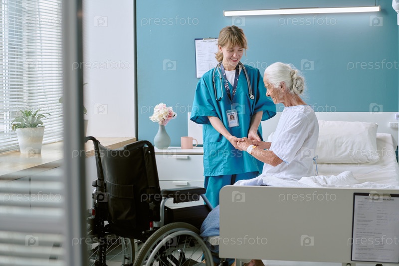 Сестра среднего возраста, помогающая пациенту пожилой женщины
