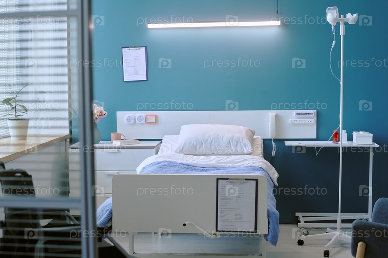 Пустая больничная кровать в современной комнате для пациентов, ожидающих нового приема