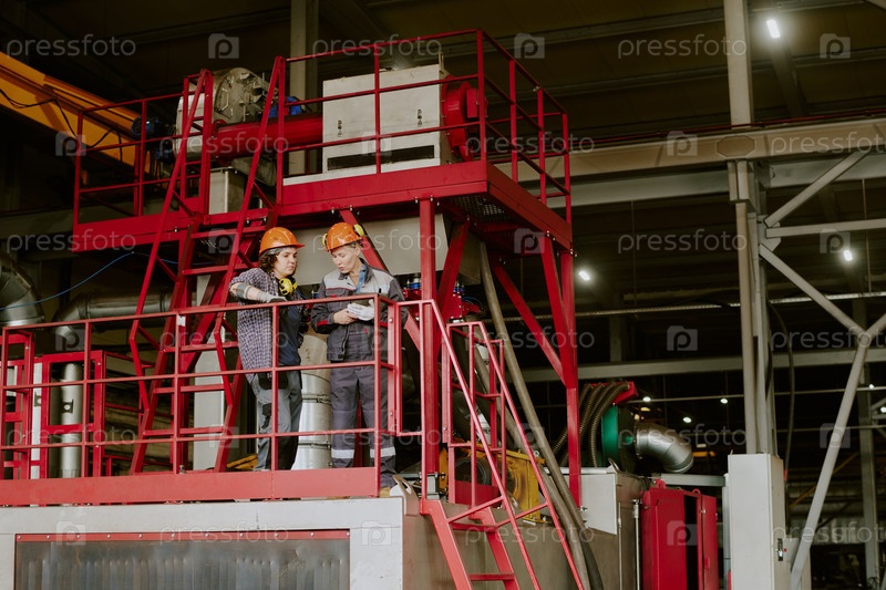 Две женщины среднего возраста обсуждают проект на промышленной платформе