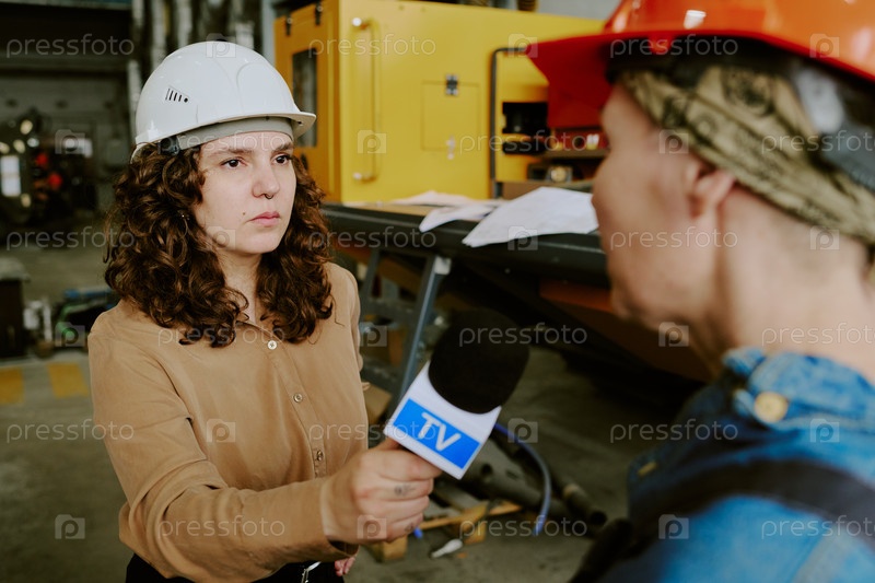 Молодая взрослая женщина, интервьюирующая женщину среднего возраста в индустриальной обстановке