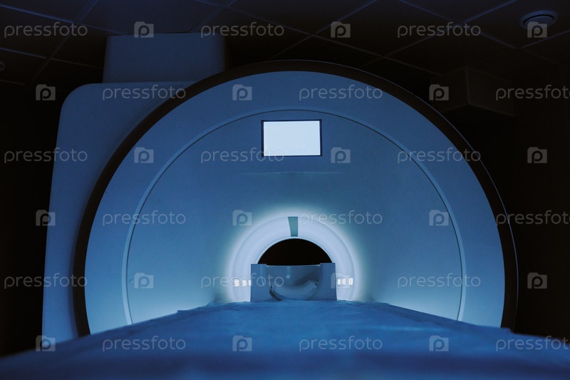 Сканер магнитно-резонансной томографии работает в больничной диагностической комнате