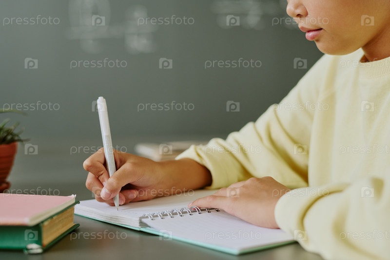 Ребенок пишет в блокноте во время азиатской занятости