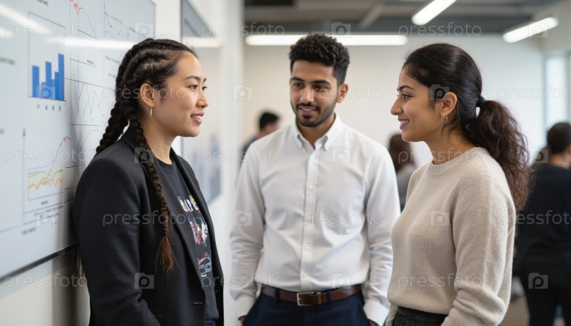 Мультиэтнические профессионалы обсуждают бизнес-стратегию в офисной обстановке