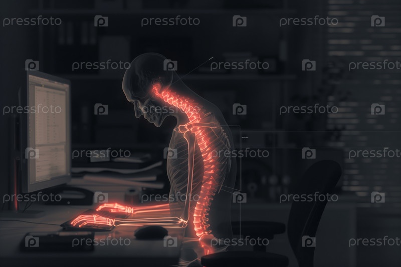 Иллюстрация, показывающая цифровое напряжение позвоночника во время сидения за компьютером