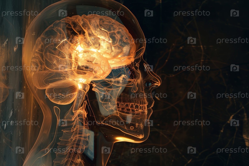 Визуализация анатомии черепа и мозга человека, показывающая структуру нервной системы