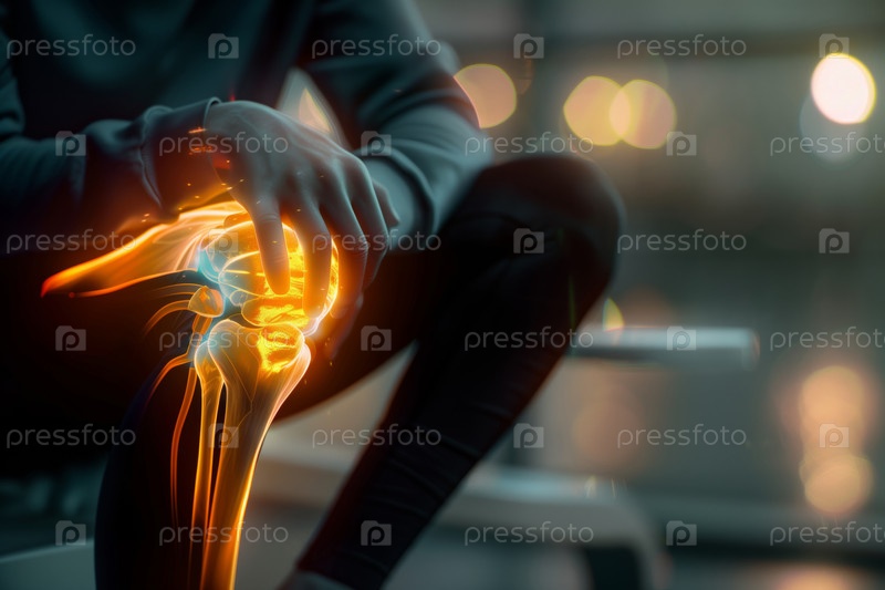 Молодая женщина, касающаяся колена и испытывающая боли в суставах внутри дома