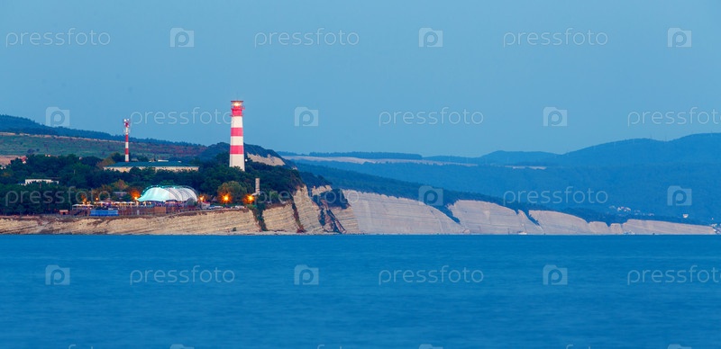 Маяк Геленджик на закате.Маяк стоит на высоком скалистом берегу