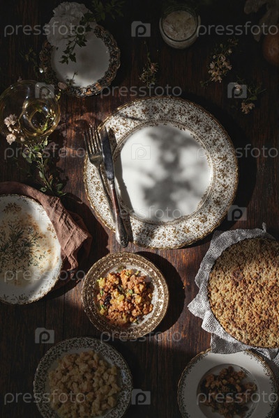 Винтажная столовая установка с традиционными блюдами Ближнего Востока над головой