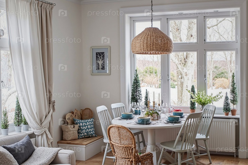 Пустой столовой стол для еды в ярком скандинавском стиле
