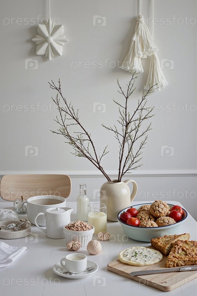 Рустический стол для завтрака с свежими выпечками и домашними печеньями