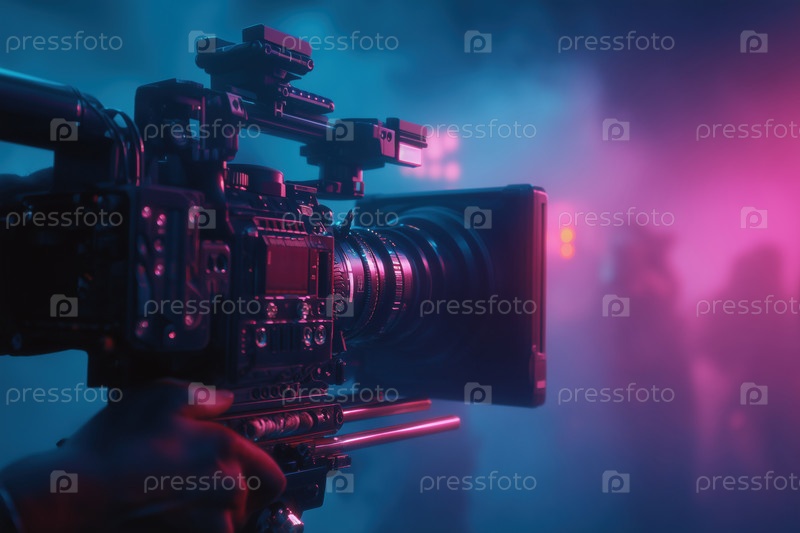 Профессиональная съемочная группа кинокамеры работает над фильмопроизводственным набором