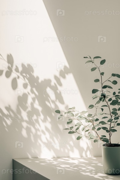 Растения лить тени на стене в яркой зеленой минималистической интерьерной обстановке