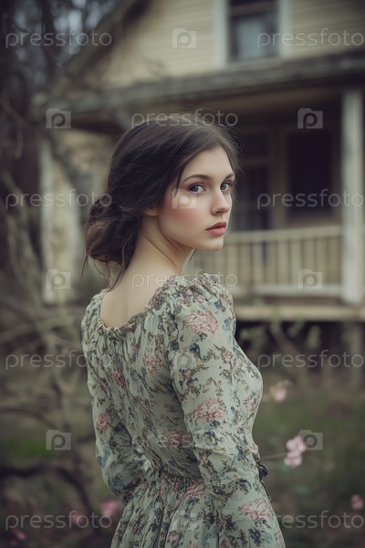 Молодая женщина стоит на улице, оглядываясь назад к камере