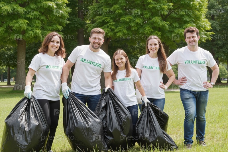 Группа волонтеров молодых взрослых, собирающих мусор на улице