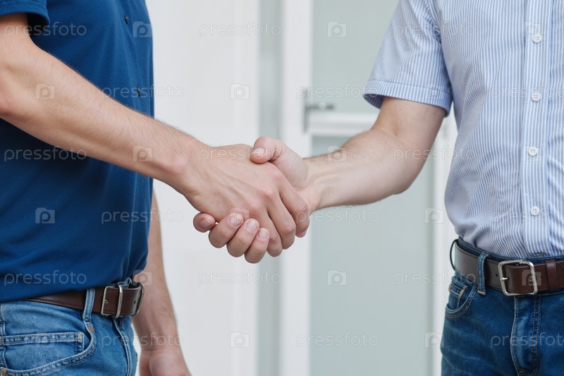 Мужчины, пожавшие друг другу руки во время делового соглашения в помещении