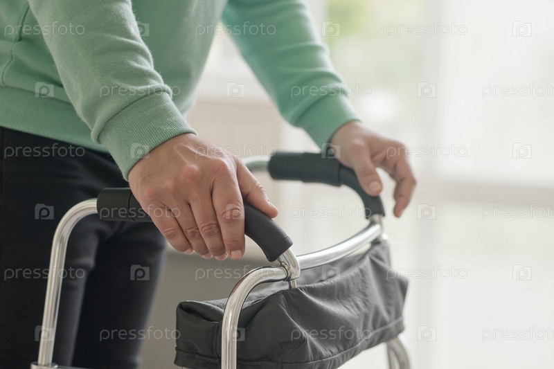 Человек, использующий устройство ходьбы в помещении для поддержки мобильности
