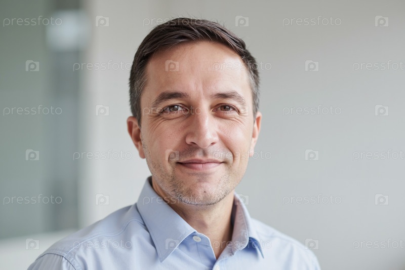 Портрет мужчины среднего возраста, улыбающегося, глядя в камеру