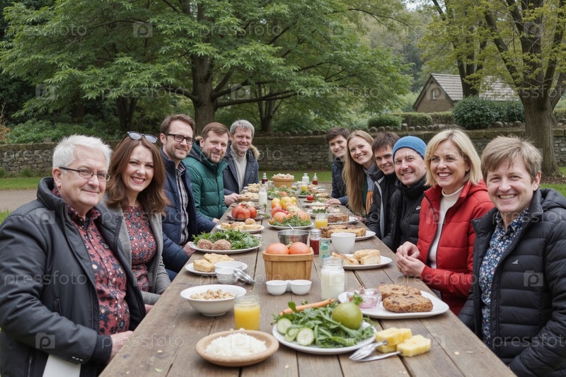 Разнообразная группа людей среднего возраста и молодых взрослых, которые наслаждаются встречами на открытом воздухе