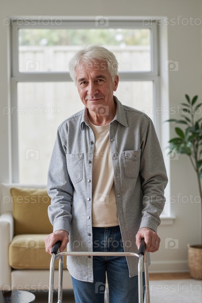Портрет пожилого человека, улыбающегося при использовании Walker Indoors