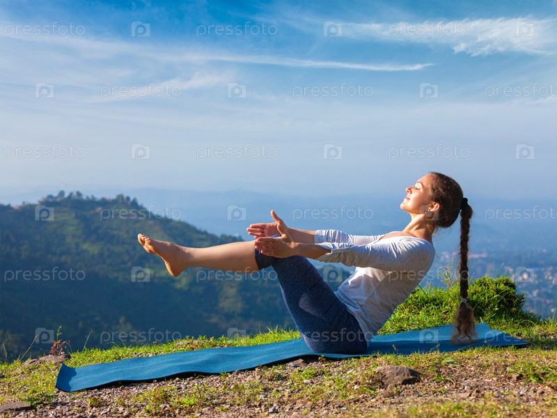 Женщина, выполняющая Ашьябо Виньяс Йогу Асаина Навасана - a bat appeal