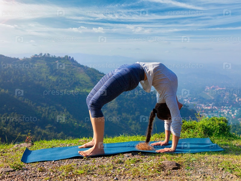 Женщина, занимающаяся Ашьябо Виньяс Йогой в деревне Урдхва Дунурана под открытым небом