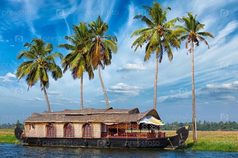 Домашняя лодка на окраине Кералы, Индия