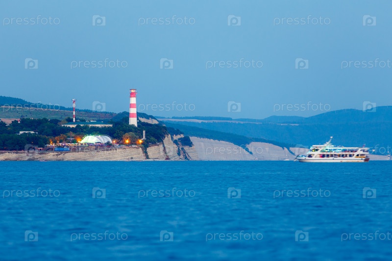 Маяк Геленджик на закате.Маяк стоит на высоком скалистом берегу