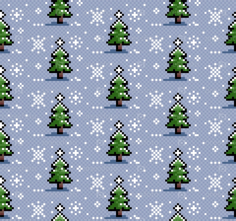 Бесшовный пиксельный фон с зимним лесом