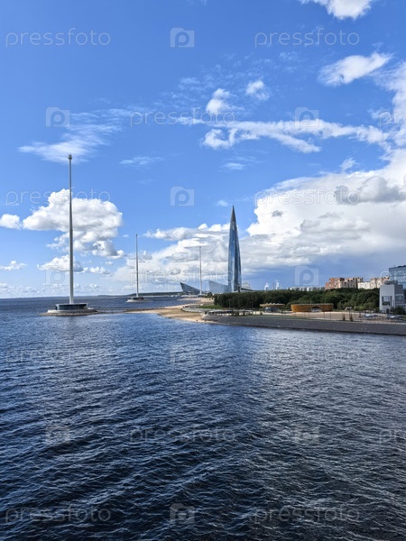 Санкт-Петербург, Россия - 08.20.2025.Центр Лакхты Небоскреб возле Финского залива