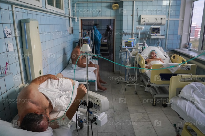 Пациенты во время пандемии covid19 в отделении красной зоны больницы