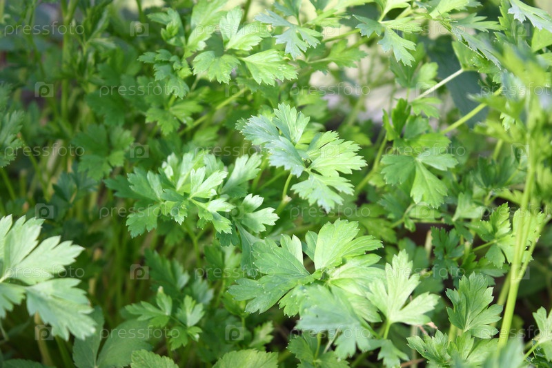 Петрушка растет в теплице