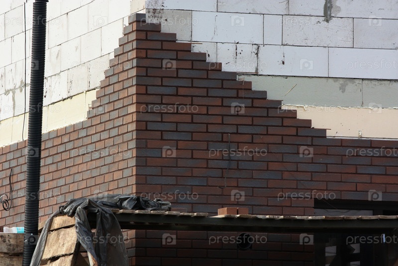 Покрытие газобетонного дома кирпичом