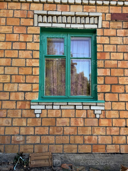 Деревянная рама окна окрашена в зеленый цвет