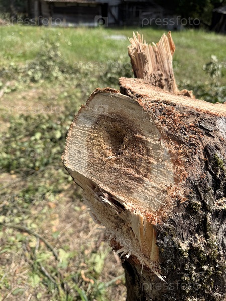 Яблоневый ствол.Ядро бочки гнилое.Уход за садом