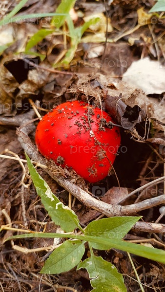 Ярко-красный пятнистый гриб в подробном стиле красного и коричневого цвета, представляющий собой естественную вибрацию